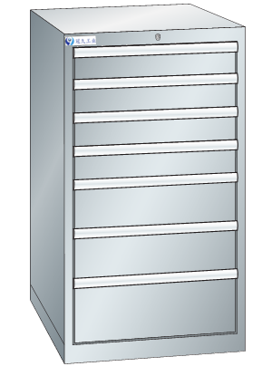 7、B-1071車間用重型單導(dǎo)軌工具柜每只抽屜設(shè)有安全鎖扣,可防止抽屜意外滑出;