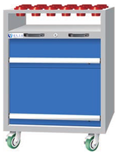 刀具車是存放、搬運(yùn)刀具的裝備,此類刀具車可存BT30、BT40、BT50、HSK63、HSK100等多種型號(hào)的刀具。多邊成型的整體式側(cè)板上有模數(shù)化的人字孔,可將刀座按水平或15°、30°傾斜放置,方便多種刀具的存取。 高強(qiáng)度腳輪,車前為兩個(gè)定向輪,車后為兩個(gè)萬(wàn)向帶 剎車輪,推行平穩(wěn),方向性好,剎車固定后不會(huì)滑動(dòng)。