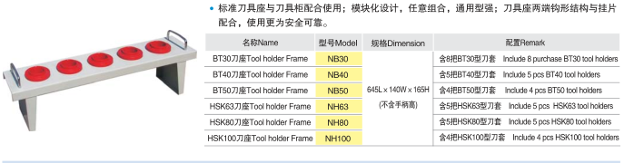 1. 采用掛片結(jié)構(gòu),可配合ISO系列、 HSK系列標(biāo)準(zhǔn)刀座使用;