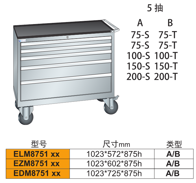 2、由各種型號的工具柜增加頂柜和腳輪等移動部件組成。