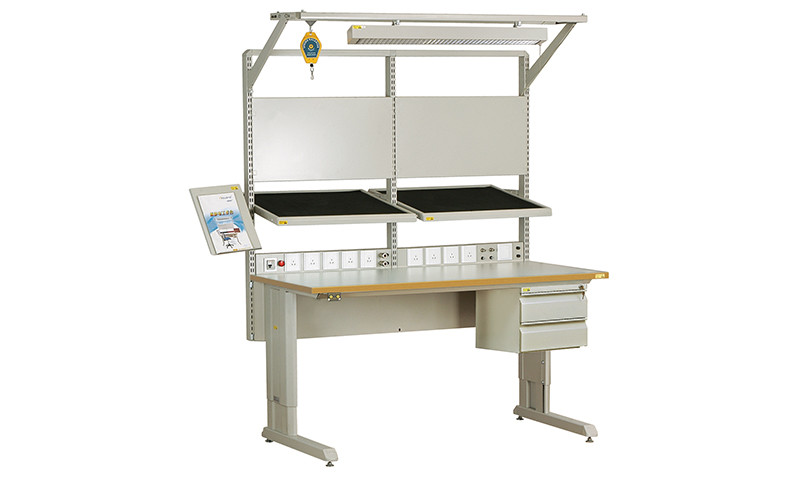 臺(tái)面具有防靜電、耐火和耐磨性,表面任意兩點(diǎn)電阻在106-109Ω之間,工作臺(tái)高度、水平及重心可調(diào)節(jié),以適應(yīng)不同生產(chǎn)要求,人性化設(shè)計(jì)的附件,支架由帶防靜電漆的鋼板制成,堅(jiān)固耐用,承載能力:500kg,高度調(diào)節(jié)范圍:670-1120mm。